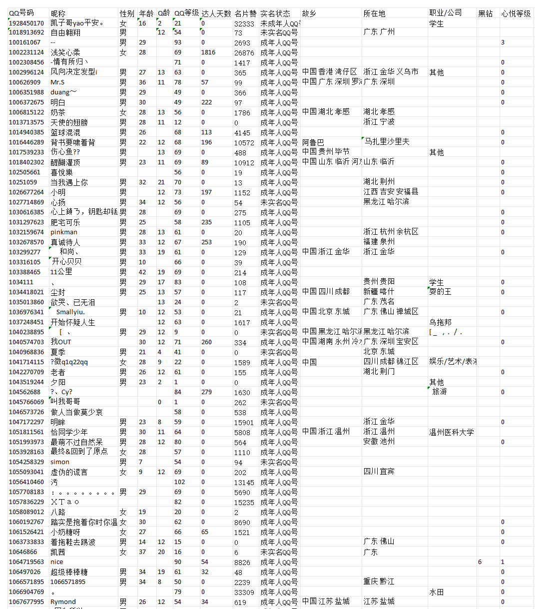 QQ好友提取,需提供要查目标的QQ号或者手机号
